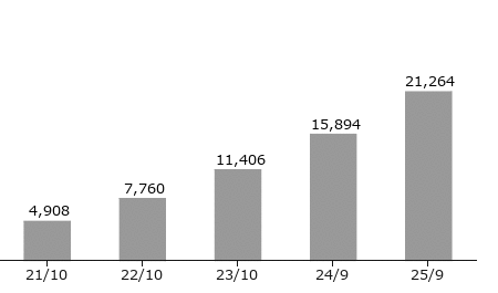 2021年9月14日開催の第13期臨時株主総会決議により、決算期を10月31日から9月30日に変更しました。従いまして、2021年9月期は2020年11月1日から2021年9月30日の11か月決算となっております。
